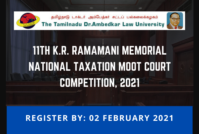 School of Excellence in Law in association with SAPR advocates is organizing the 11th Edition of K.R. Ramamani Memorial National Taxation Moot Court Competition 2021, virtually in March.