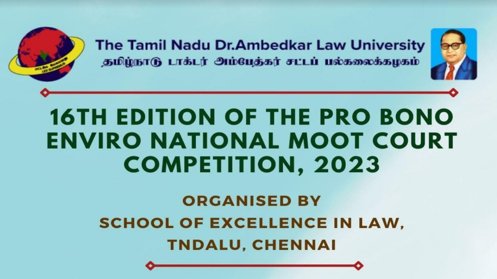 School of Excellence in law takes immense pleasure in announcing the 16th Edition of the Pro Bono Enviro National Moot Court Competition, the flagship event of the institution.