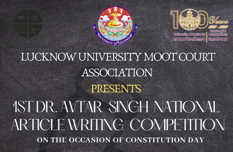 It gives us immense pleasure to announce that Lucknow University Moot Court Association is organizing 1st Dr. Avtar Singh National Article Writing Competition on the occasion of Constitution Day (National Law Day), i.e., 26th November 2020.
