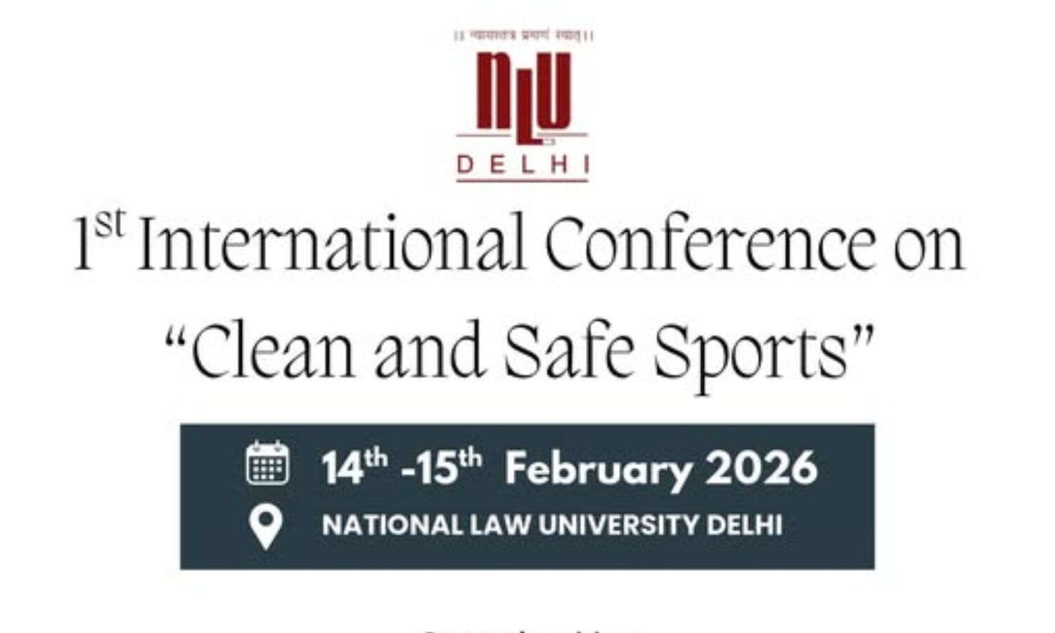 UNESCO Chair, National Law University Delhi is organising its 1st International Conference on Legal Dimensions of Clean and Safe Sports scheduled to be held from 14-15th February 2026.