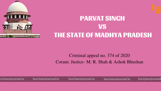 In the Supreme Court of India Criminal appellate jurisdiction Criminal appeal no. 374 of 2020 Arising out of slp (crl) no. 9252 of 2018 Petitioner Parvat Singh Respondent The State of Madhya Pradesh Date of Judgement 2nd March, 2020 Bench Hon’ble Justice M. R. Shah & Ashok Bhushan Facts of the case: According to the