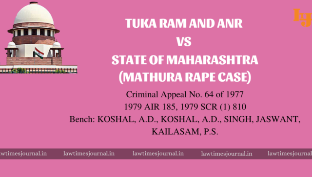 In the Supreme Court of India Criminal Appeal No. 64 of 1977 1979 AIR 185, 1979 SCR (1) 810 Petitioner Tuka Ram & anr Respondent State of Maharashtra Date of Judgement 15th September 1978 Bench Hon’ble Justice Koshal, A.D. Koshal; A.D. Singh, Jaswant, Kailasam, P.S. Background of the Case: A young girl named Mathura was