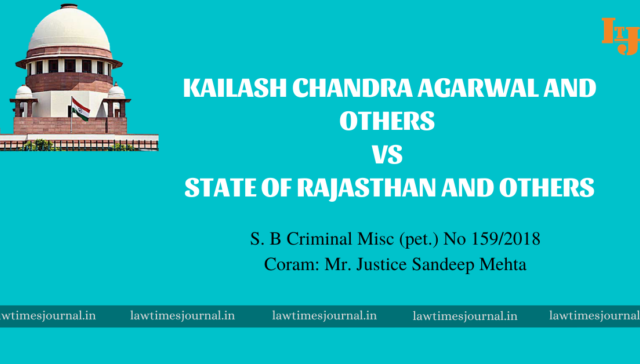 In the High Court of Judicature for Rajasthan at Jodhpur S. B Criminal Misc (pet.) No 159/2018 Petitioner Kailash Chandra Agarwal & Nand Bihari Respondents State of Rajasthan & Bhanwar Singh Date of Judgement 7th April 2020 Bench Hon’ble Mr. Justice Sandeep Mehta Relevant Provisions The Indian Penal Code 1820 section 420, 467, 468, 471