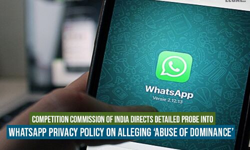 Competition Commission of India Directs Detailed Probe into WhatsApp Privacy Policy on Alleging ‘Abuse of Dominance’ The Competition Commission of India (CCI) asked for a detailed investigation into allegations of ‘abuse of dominance’ leveled against WhatsApp regarding its privacy policy. The CCI initiated suo motu proceedings in January 2021, after it took into consideration the