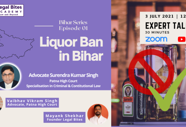 Legal Bites is organising a FREE webinar on Liquor Ban in Bihar: Boon or Bane? on 3rd July 2021 at 12:30 pm. Register Now Legal Bites Bihar Series is focused on Bihar state’s contemporary challenges having a significant impact on the legal, social and political scenario. About the Webinar There are diverse opinions on the