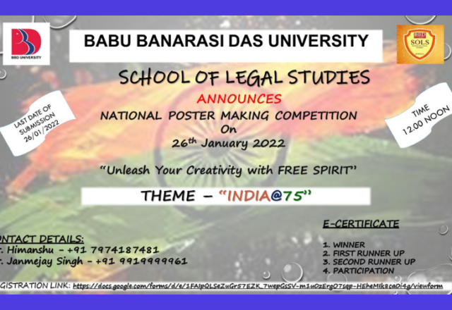 Last Updated on 42 mins by Admin LB BBD University is organising National Poster Making Competition, submissions of which are accepted before 26th January 2022 (12:00 Noon). About the University BBD University aims to transform the way people think by teaching them problem solving, leadership and teamwork skills, and the value of commitment to quality,