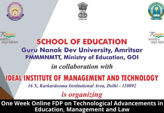 Last Updated on 59 mins by Admin LB One-Week Online FDP on Technological Advancements in Education, Management and Law is being organised by IITM from 11th July to 17th July, 2022. About the Organisation Ideal Institute of Management and Technology & School of Law is Committed to be an Academic Institution with Relevant, Accurate, Timely,