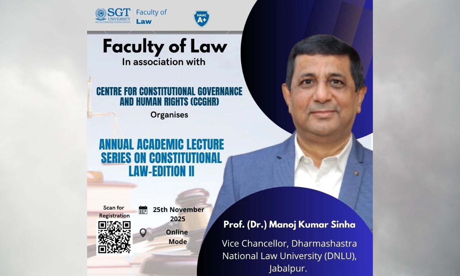 The Faculty of Law, SGT University, in association with the Centre for Constitutional Governance and Human Rights (CCGHR), proudly presents the next session of our prestigious 2nd Annual Academic Lecture Series on Constitutional Law.