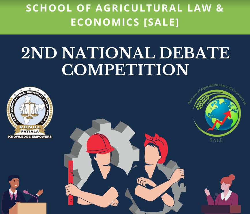 The 2nd National Level Debate Competition, organized by the School of Agricultural Law & Economics (SALE), RGNUL, Punjab, will be based on the Lincoln-Douglas debate format i.e. one on one debate, in order to promote individualism amongst the participants. Through this competition, we aim at providing the students with a platform to hone their debating skills and improve the whole debating experience by ensuring that the participants meet with challenging issues based on contemporary and developing aspects of law and society. The competition strives to provide a safe platform for students to grow and experiment with their communication skills and critical thinking abilities.