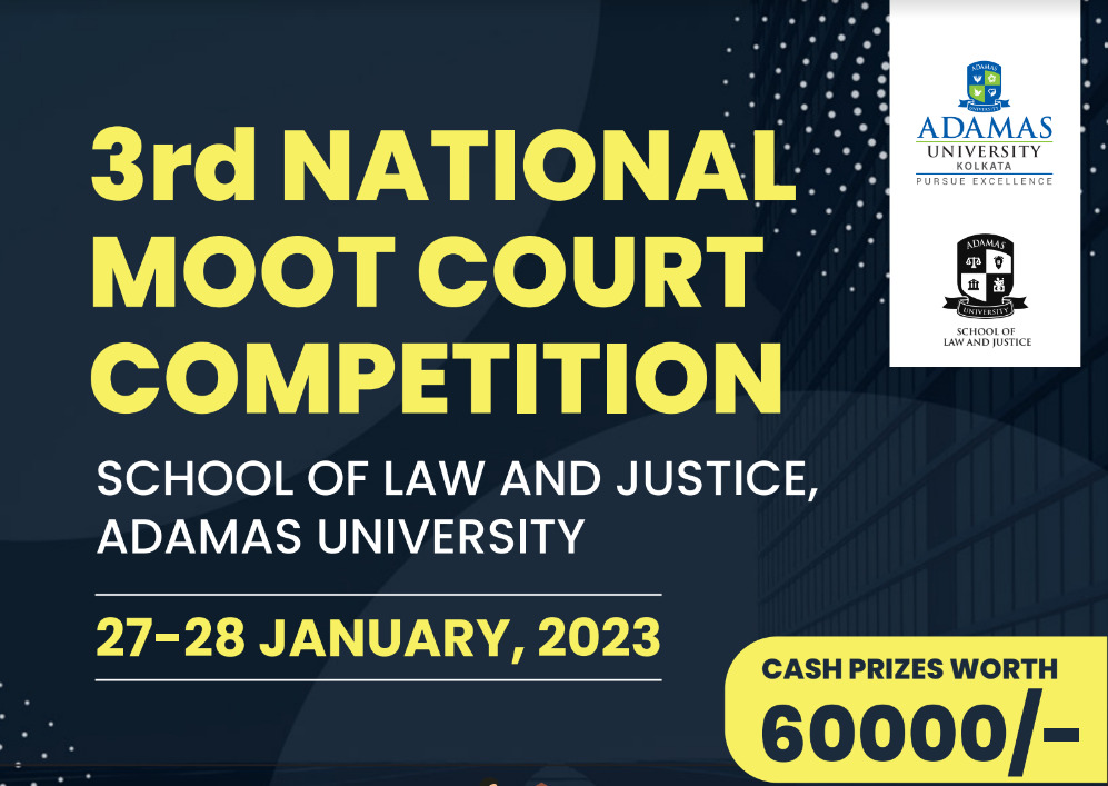 3rd SOLJ National Moot Court Competition is being organised by School of Law and Justice, Adamas University from 27th – 28th January 2023.