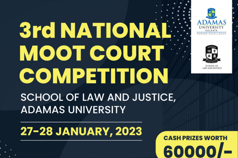3rd SOLJ National Moot Court Competition is being organised by School of Law and Justice, Adamas University from 27th – 28th January 2023.