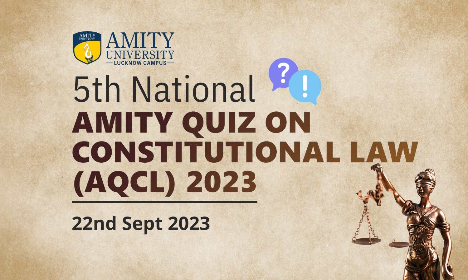 Amity Law School, AUUP Lucknow Campus is organizing the 5th Amity National Quiz on Constitutional Law, 2023 scheduled to be held on 22nd September 2023 in offline mode.