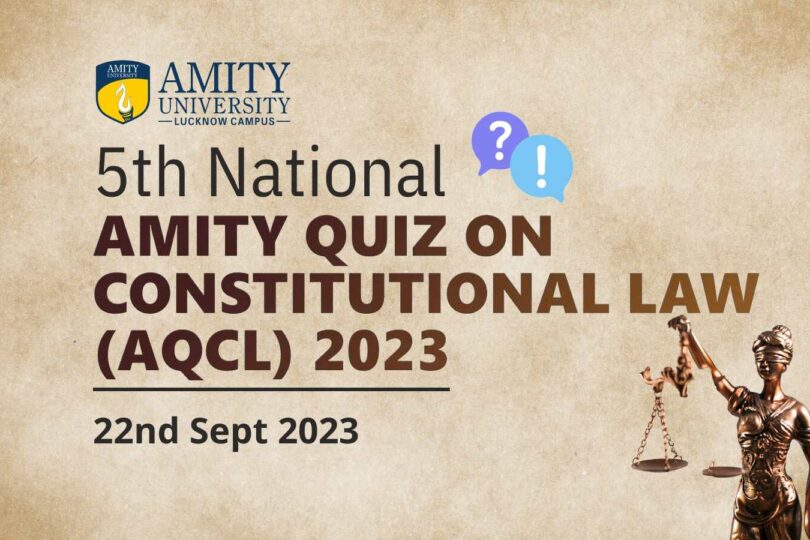 Amity Law School, AUUP Lucknow Campus is organizing the 5th Amity National Quiz on Constitutional Law, 2023 scheduled to be held on 22nd September 2023 in offline mode.
