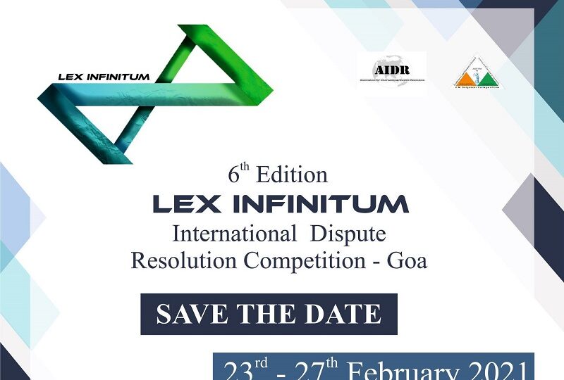 Amidst the COVID-19 pandemic, the prestigious 6th Edition of Lex Infinitum (VMSCL-AIDR) will be held in an online mode from 21st to 27th February 2021, where 36 Negotiating Teams and 18 Mediators from around the world will be selected to compete.