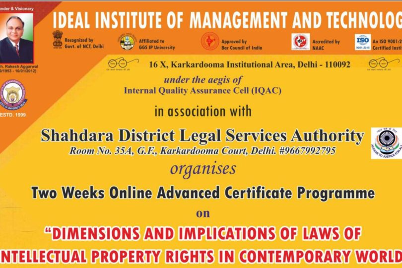 Two Weeks Online Advanced Certificate Programme on “Dimensions And Implications of Intellectual Property Rights Laws In Contemporary World” offered by School of Law, Ideal Institute of Management and Technology sets forth an unparalleled opportunity for Working professionals, Academicians, Researchers, and Students to engage in insightful learning sessions integrating nuances of IPR with contemporary developments in the various arrays of legislation.