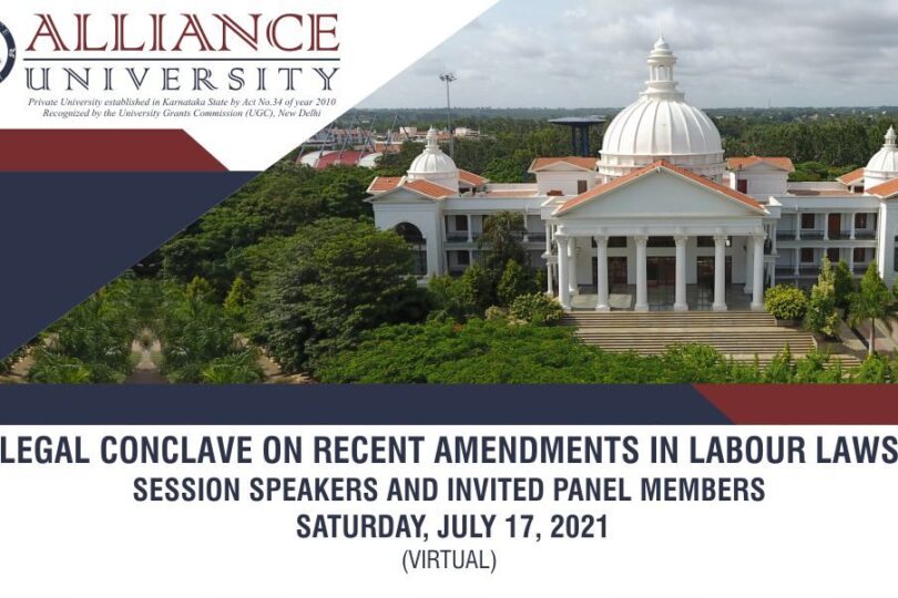 Alliance School of Law, Alliance University is organizing a Legal Conclave on Labour Laws on July 17, 2021. The primary objective is to address the herculean task of simplifying Labour Laws and ease of doing business in India at a time when the Government of India is all set to amalgamate its infamous & labyrinthine Labour Laws into four distinct new Labour Codes.