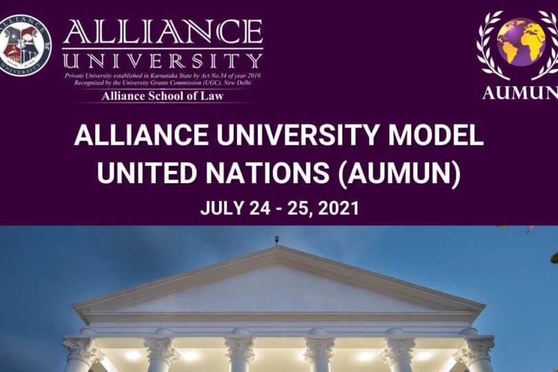 Alliance School of Law, Bangalore is organizing its first online edition of Alliance University Model United Nations (AUMUN) on 24th and 25th July 2021.