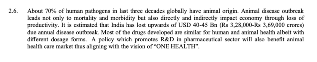 Interestingly, the policy makers have also underlined the idea of animal health and the required pharma innovation to avoid consequent disease outbreak. Therefore, it enforces the WHO’s idea of ‘One Health’ in the Indian medical sphere wherein an unifying approach to balance and optimise the health of people and animals are to be undertaken to avoid pandemics like COVID-19. Cumulatively, due to all these measures, the Policy also envisages creation of white collar jobs in the health and allied sector in the coming decade. (Refer to the picture below)