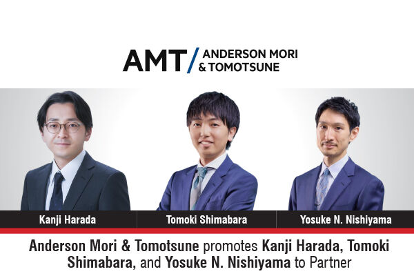 The premier full-service global law firm, Anderson Mori & Tomotsune is delighted to announce the promotion of Kanji Harada, Tomoki Shimabara, and Yosuke N. Nishiyama to Partner, recognising their exceptional expertise and leadership across corporate, M&A, capital markets, and cross-border transactions.