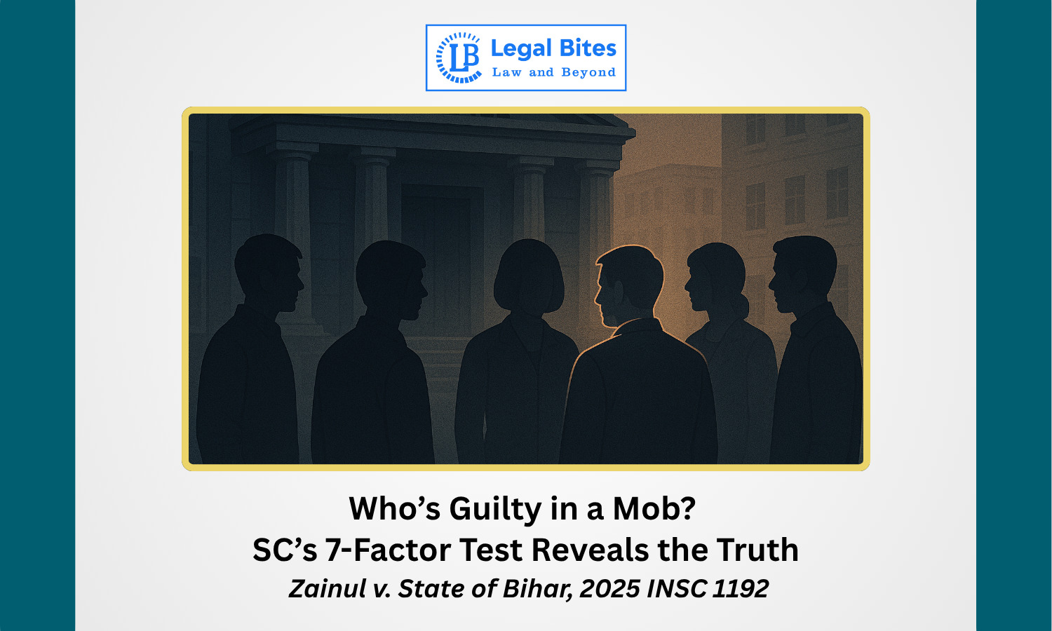 In a landmark ruling, the Supreme Court of India in Zainul v. State of Bihar (2025 INSC 1192) has laid down a 7-factor test to determine whether a person is truly a member of an unlawful assembly under Section 149 of the Indian Penal Code (IPC)/ Section 190 of Bharatiya Nyaya Sanhita (BNS). The decision, delivered by Justice J.B. Pardiwala, clarifies the fine line between innocent bystanders and active participants in group offences—a distinction often blurred in cases involving mob violence or communal clashes.
