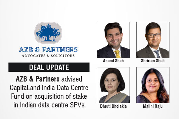 The leading law firm in India, AZB & Partners represented CapitaLand India Data Centre Fund Pte. Ltd., a private fund based in Singapore, on its proposed acquisition of a 20.02% stake in three India-level special purpose vehicles (SPVs) holding data centre assets.