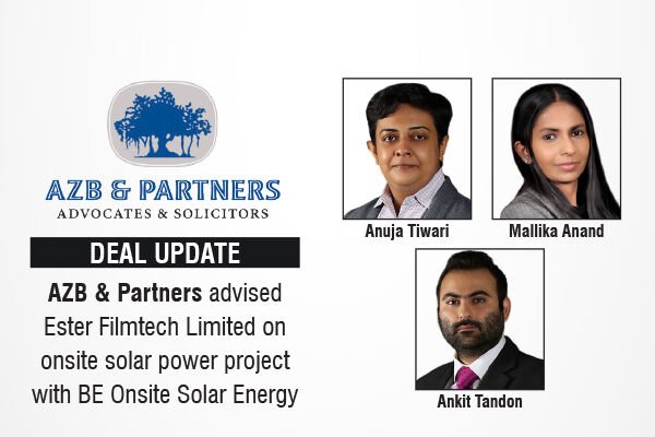AZB & Partners advised Ester Filmtech Limited on onsite solar power project with BE Onsite Solar Energy