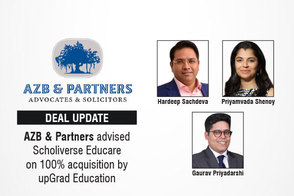 The leading law firm in India, AZB & Partners advised the largest early-talent marketplace, Scholiverse Educare Private Limited, on its 100% acquisition by upGrad Education Private Limited by way of a secondary and stock-swap transaction.
