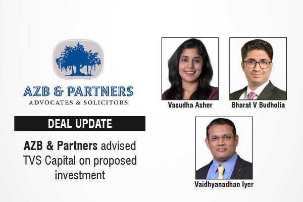 The AZB & Partners deal team comprised Vasudha Asher (Partner), Shreshth Bhartia (Senior Associate), Tanay Chopra (Senior Associate), and Ria Doshi (Associate), with support from Associates Nishita Agrawal and Rikhil Haldar.