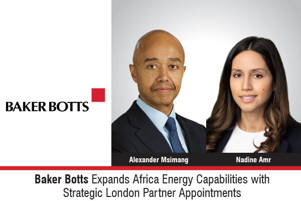 Baker Botts has strengthened its Africa-focused energy practice with the addition of two partners, Alexander Msimang and Nadine Amr, who have joined the firm’s London office from Vinson & Elkins. The hires form part of Baker Botts’ broader strategy to expand its international energy capabilities and capitalise on growing opportunities across Africa’s oil, gas, power, and infrastructure sectors.