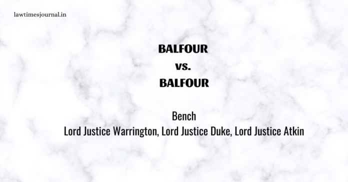 Equivalent Citation – [1919] 2 KB 571 Petitioner: Balfour Respondent: Balfour Bench: Kings Bench Lord Justice Warrington, Lord Justice Duke, Lord Justice Atkin