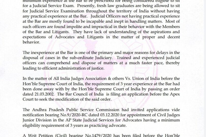 Bar Council of India to move Supreme Court seeking modification of the order allowing fresh law graduates to become judicial officers. “Judicial officers not having practical experience at the bar are mostly found to be incapable and inept at handling matters”, BCI says.