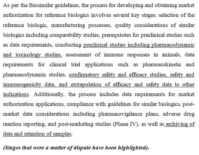 Cadila and Hetero, in response, defended their position by claiming bio-similarity with Roche’s drugs but did not respond on the specific substantive issues as much as they relied on the authorization granted by the Regulator.