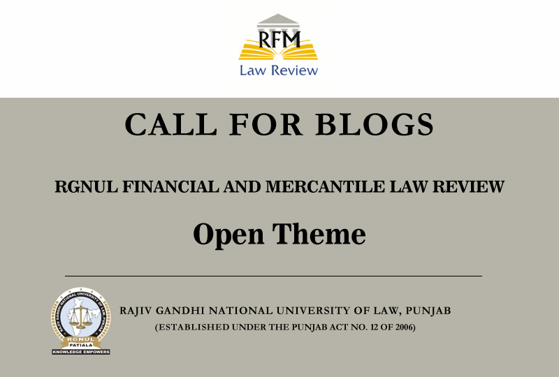 The RGNUL Financial and Mercantile Law Review, Editorial Board invites blog submissions from legal practitioners, advisors, academics, and law students on various areas of business and commercial laws such as corporate law, mergers and acquisitions, competition, insolvency, banking and insurance, capital markets, dispute resolution, and ADR, international trade, investment funds, labour, employment, taxation, intellectual property, real estate, technology, media & telecommunication, and white-collar crimes, and other contemporary issues in financial and mercantile laws.