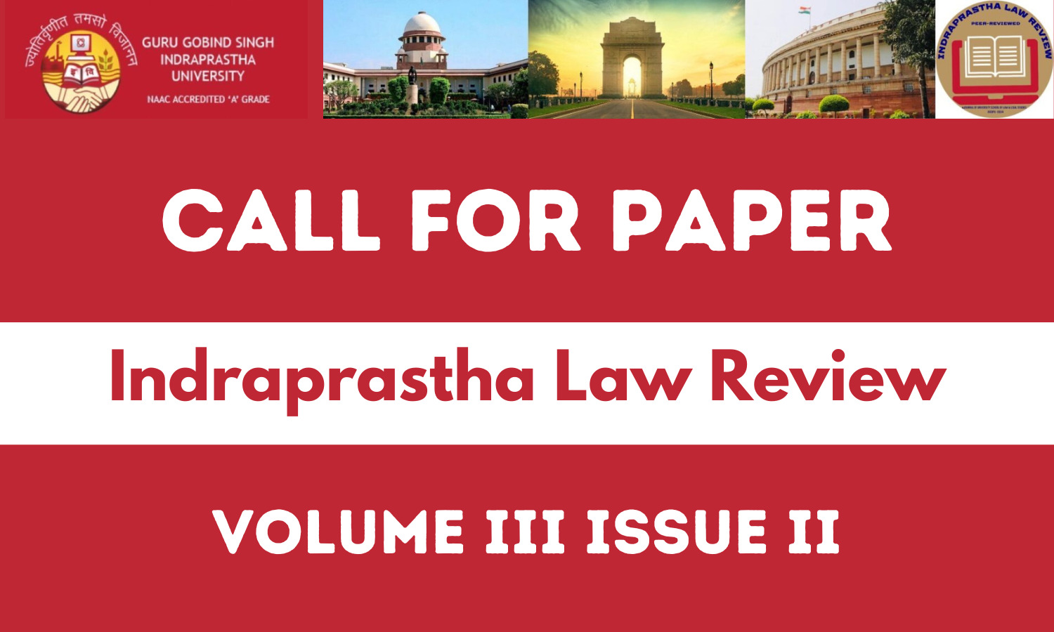 Note: All the submissions shall be put to double stage blind peer review and only on the recommendations of the reviewers, the papers submitted shall be considered for publication on Indraprastha Law Review website. Only shortlisted manuscripts will be contacted via email. If you do not hear from us within two weeks of the deadline, please assume that your manuscript has not succeeded. Unfortunately, we will not be able to reply to individual queries about the status of their manuscript.