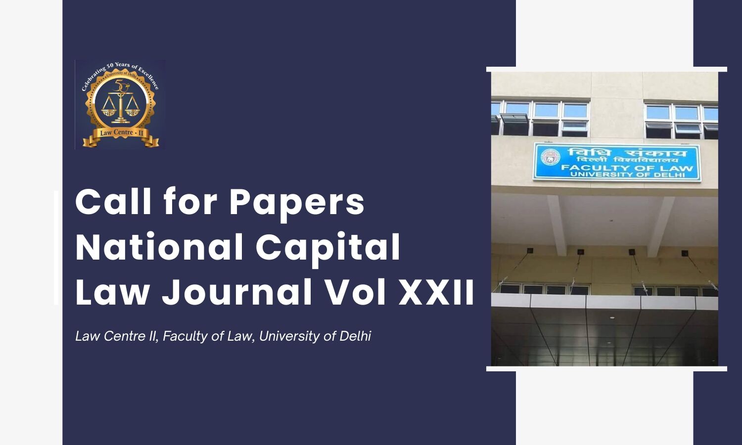 Law Centre II, University of Delhi is inviting submissions for the upcoming Volume XXII of its National Capital Law Journal in the form of Articles, short notes, case comments, etc.