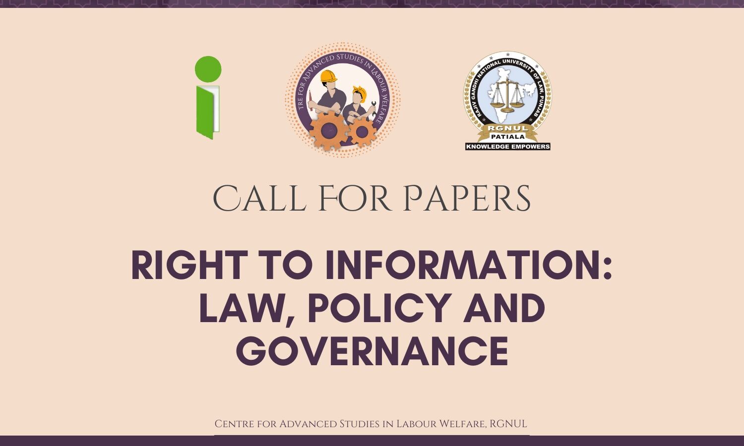 Centre for Advanced Studies in Labour Welfare(CASLW), RGNUL is pleased to announce a Call for Papers for the forthcoming book on “Law, Governance, and Policy” in collaboration with Punjab State Information Commission, to be published by the Rajiv Gandhi National University of Law. This book aims to provide a comprehensive and insightful exploration of the critical aspects and emerging trends in the field of law, governance, and policy with a particular focus on the Right to Information (RTI).