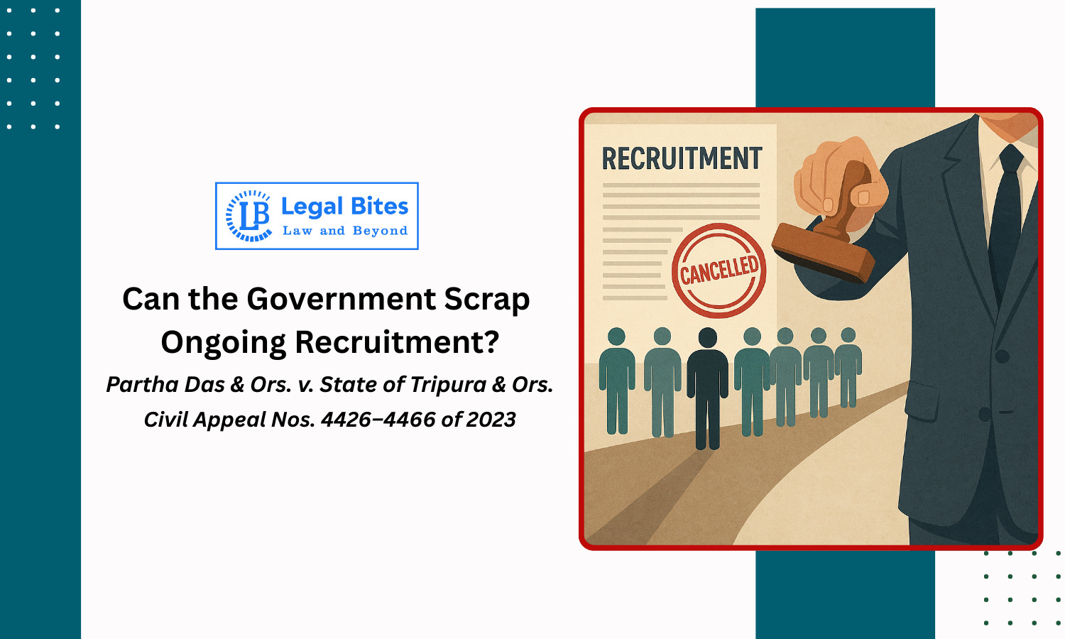 The Supreme Court’s decision in Partha Das v. State of Tripura underscores a vital constitutional principle: Governments cannot cancel recruitment processes midway in violation of statutory rules and principles of fairness.