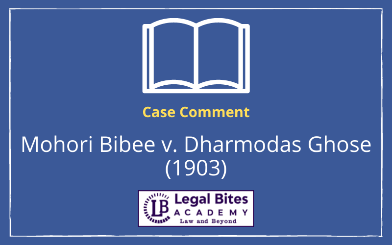This case comment on Mohori Bibee v Dharmodas Ghose (1903 ILR 30 CAL 539 (PC)’ is written by Md. Tauhid Karim and Aman Kumar and analysis the judgement of Mohori Bibee v Dharmodas Ghose.