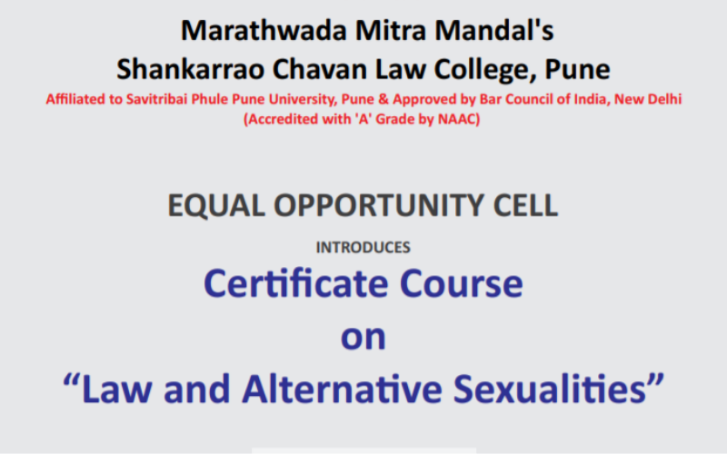Marathwada Mitra Mandal’s Shankarrao Chavan Law College is organising a Certificate Course on Law and Alternative Sexualities from 1st February 2022.