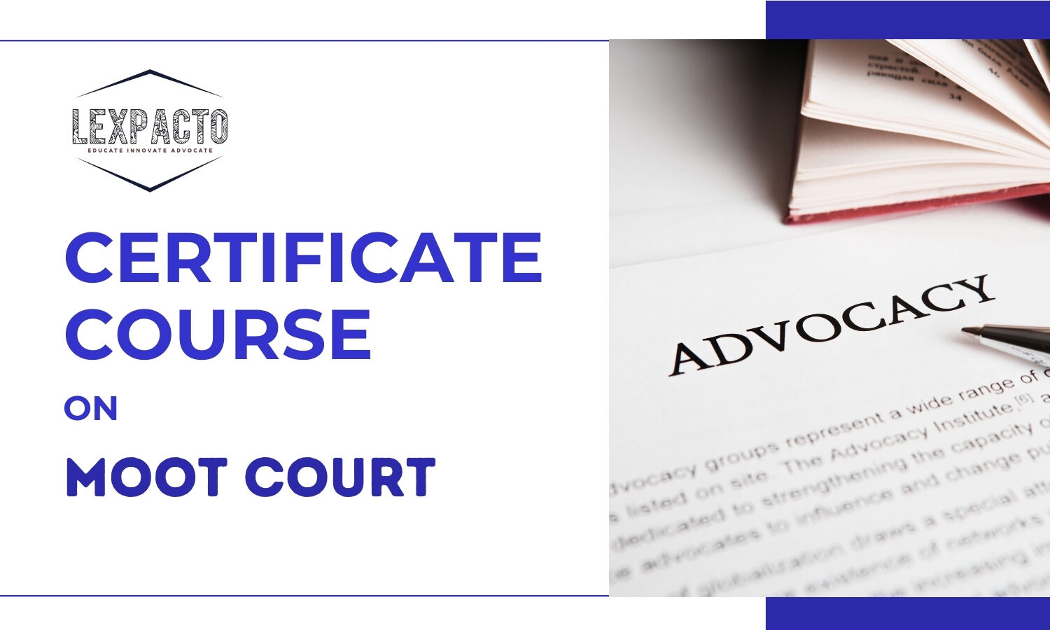 LexPacto is organising a comprehensive 4-week Moot Court Certificate Course, starting from 30th December 2023 and ending on 21st January 2023.