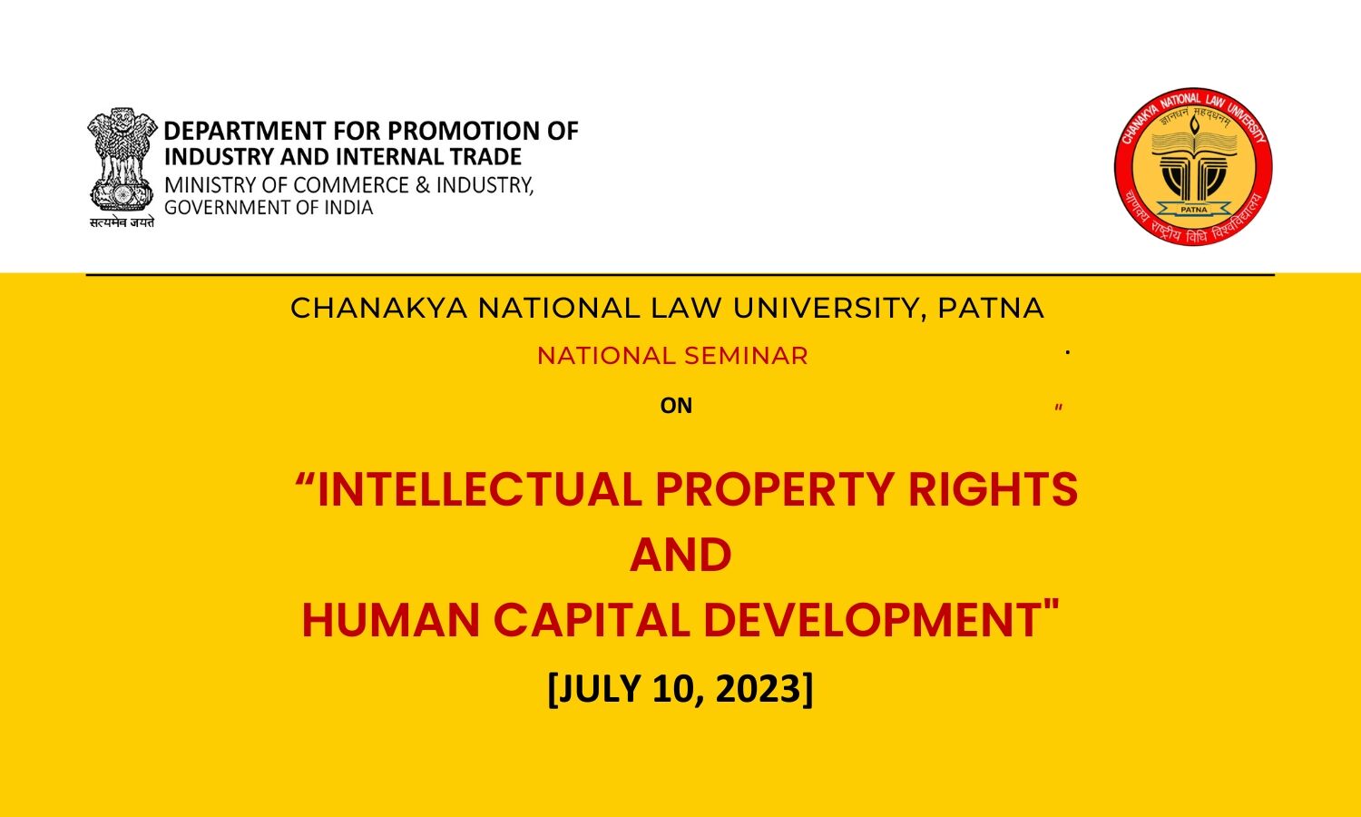 DPIIT-IPR Chair of Chanakya National Law University, Patna is inviting submissions for its National Seminar on “Intellectual Property Rights and Human Capital Development”.