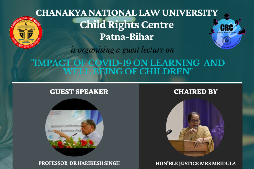 CNLU Patna Guest Lecture. Chanakya National Law University is organising a Guest Lecture On “Impact Of COVID-19 On Learning And Well-Being Of Children” By Child Rights Centre, CNLU Patna: 20th July, 2021