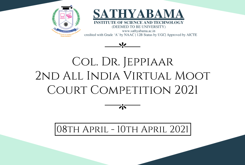 Sathyabama School of Law is organising Col. Dr. Jeppiaar 2nd All India Virtual Moot Court Competition 2021 on theme Constitutional and Criminal Law.