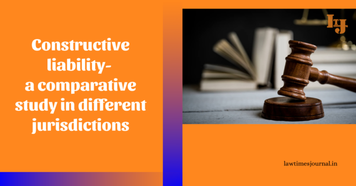 Constructive liability is the one where the liability is not determined by the existence of the fundamental elements of crime. The liability is based on a Latin maxim “versari in re illicita” which means a person may also be criminally held liable for any consequences resulting from his unlawful conduct. Therefore, the person may not be having any knowledge of such consequences but he will be held criminally liable for all such consequences if they are resulting from the conduct of the same person. This concept of constructive liability can be traced from various jurisdictions of criminal law including the Indian criminal justice system.