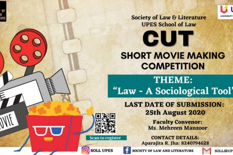 Society of Law & Literature University of Petroleum and Energy Studies, School of Law, Dehradun is organising CUT-UPES Short Movie Making Competition 2020.