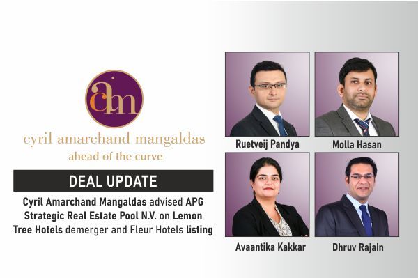 The leading law firm in India Cyril Amarchand Mangaldas advised APG Strategic Real Estate Pool N.V. (“APG”) in connection with a proposed strategic re-organisation involving Lemon Tree Hotels Limited (“Lemon Tree”). Under the scheme of arrangement, Lemon Tree is set to demerge its hotel assets into Fleur Hotels Limited (“Fleur”), resulting in the listing of Fleur.