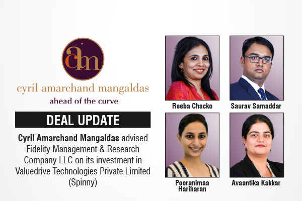 The leading law firm in India, Cyril Amarchand Mangaldas acted as legal counsel to Fidelity Management & Research Company LLC (FMR) in connection with its investment in Valuedrive Technologies Private Limited (Spinny) as part of a Series G funding round. The transaction involved a mix of primary and secondary investments, collectively valued at USD 170 million, with FMR acting as the lead investor.
