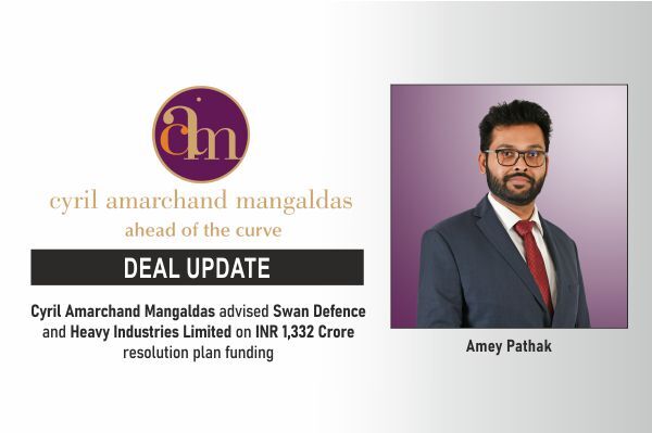 The Leading law firm in India, Cyril Amarchand Mangaldas advised Swan Defence and Heavy Industries Limited in relation to part funding of the balance resolution plan amount of INR 1,332 Crore for the acquisition of erstwhile Reliance Naval and Engineering Limited under an NCLT-approved resolution plan, April 06, 2026, Mumbai. The transaction involves a deferred payment arrangement with the financial creditors of the erstwhile entity, with financing extended by the National Bank for Financing Infrastructure and Development (NaBFID). The completion of the transaction is subject to terms agreed under the resolution framework.