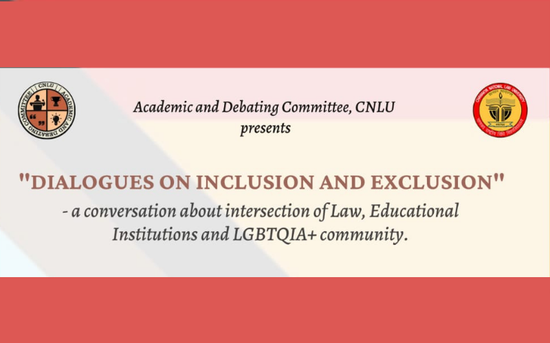 CNLU Academic & Debating Committee’s is organising a Panel Discussion on Dialogues on Inclusion and Exclusion – a Conversation About Intersection of Law, Educational Institutions and the LGBTQIA+ Community.