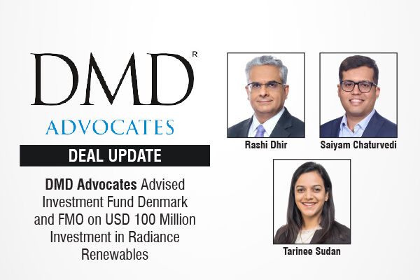 The leading law firm in India, DMD Advocates is advising Investment Fund Denmark (formerly IFU) and FMO, the Dutch Entrepreneurial Development Bank, on their investment in Radiance Renewables Private Limited, a leading India-focused commercial and industrial renewable energy platform backed by Eversource Capital.